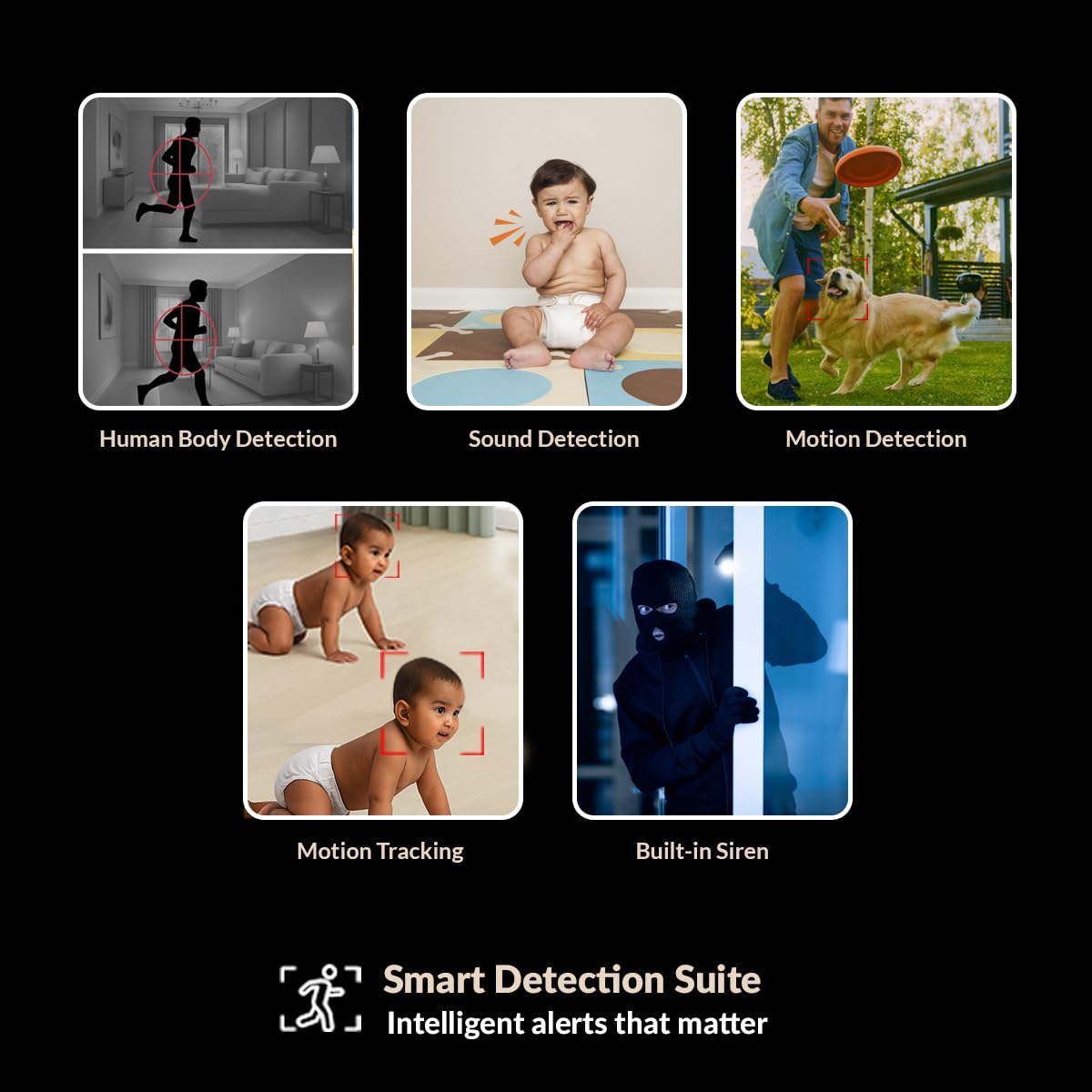 • AI MOTION DETECTION & TRACKING: Equipped with AI-powered motion tracking, this Wi-Fi camera detects human movement and follows it automatically, sending real-time alerts through the ezyKam+ app to your smartphone.
