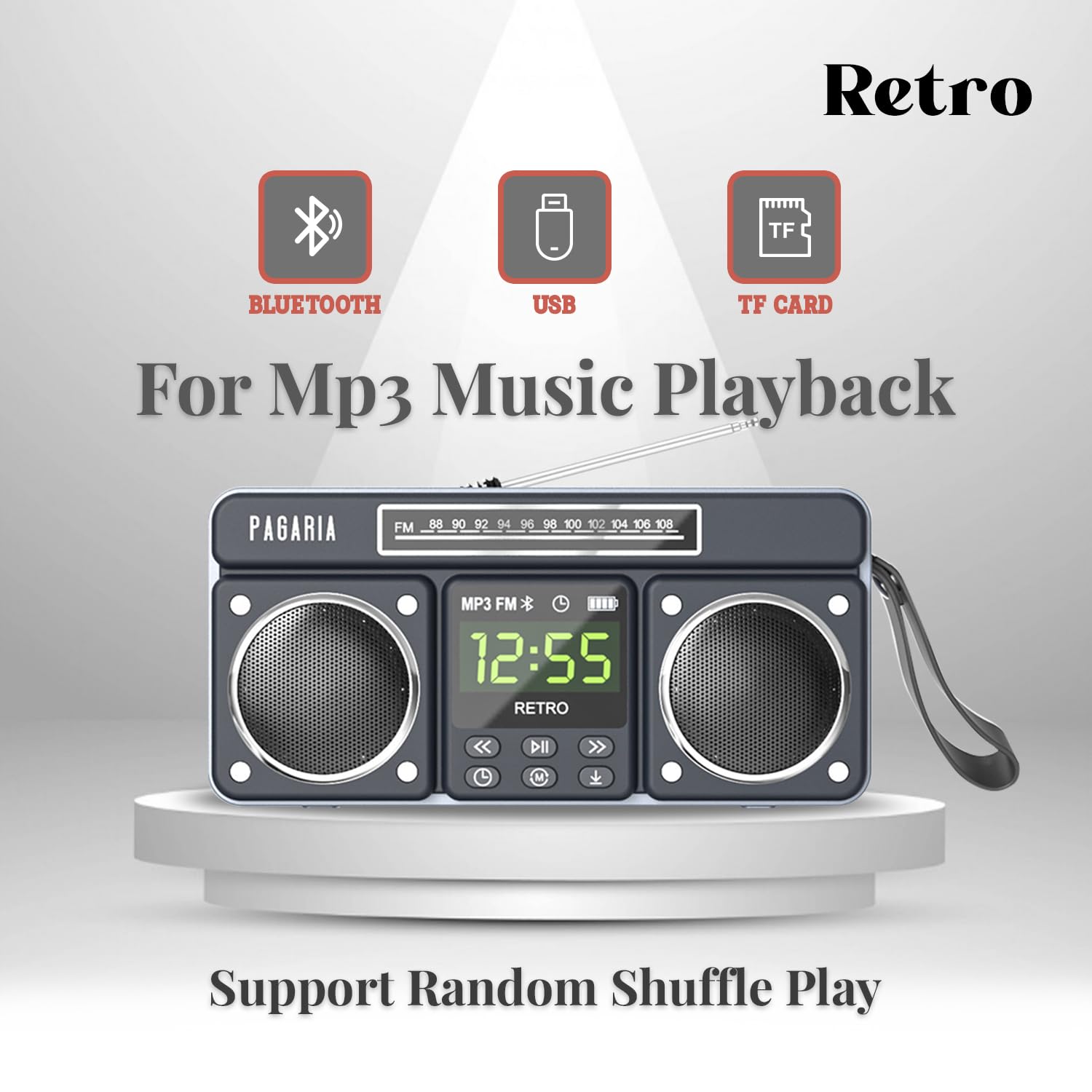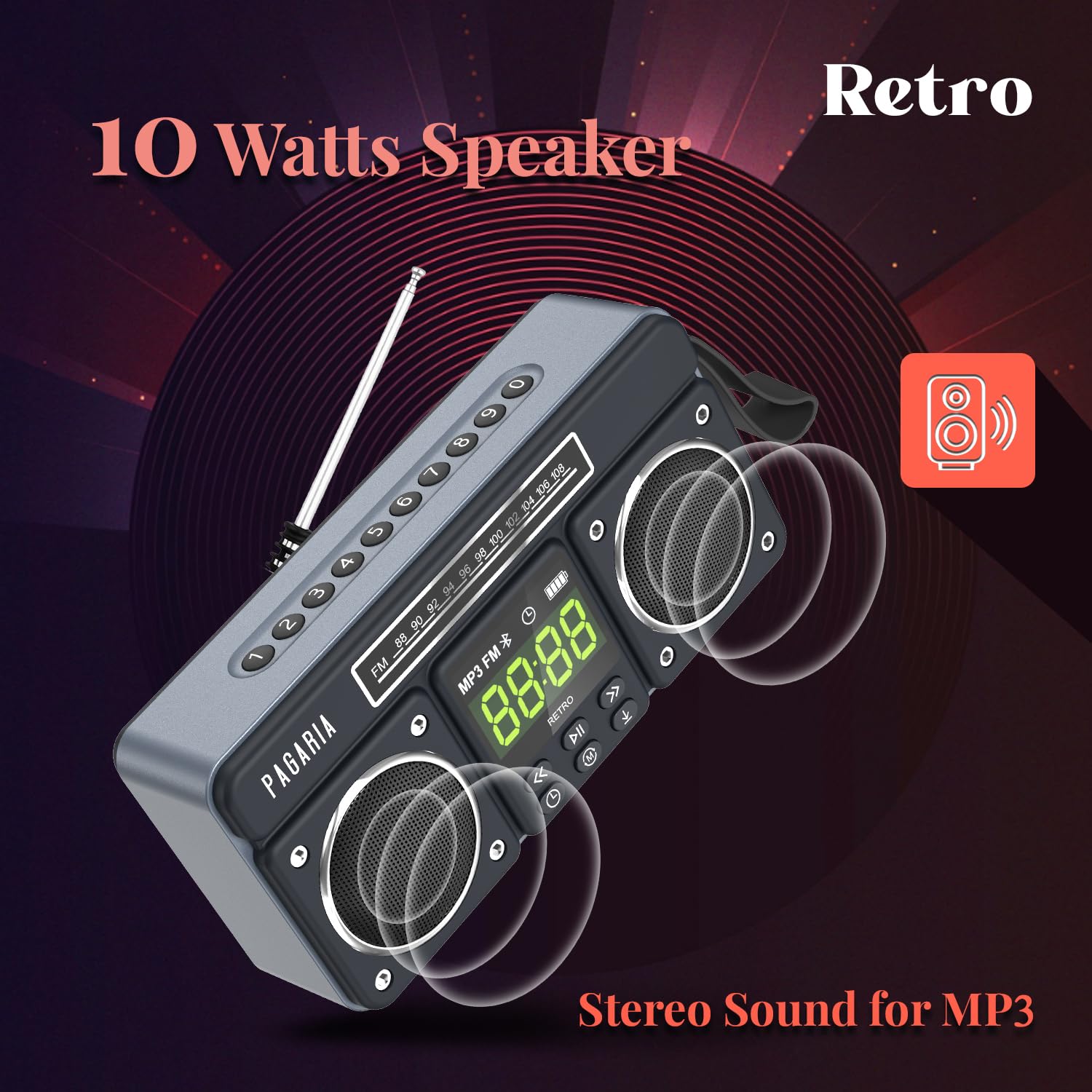 - ✅ 10 WATTS STEREO SOUND: Retro comes with 2 x 5 Watts Speaker giving real Stereo Sound for Mp3 Playback Only. The loudness has right balance of Bass, Treble, low, mid’s and high’s of audio, ensuring best sound quality with clarity.