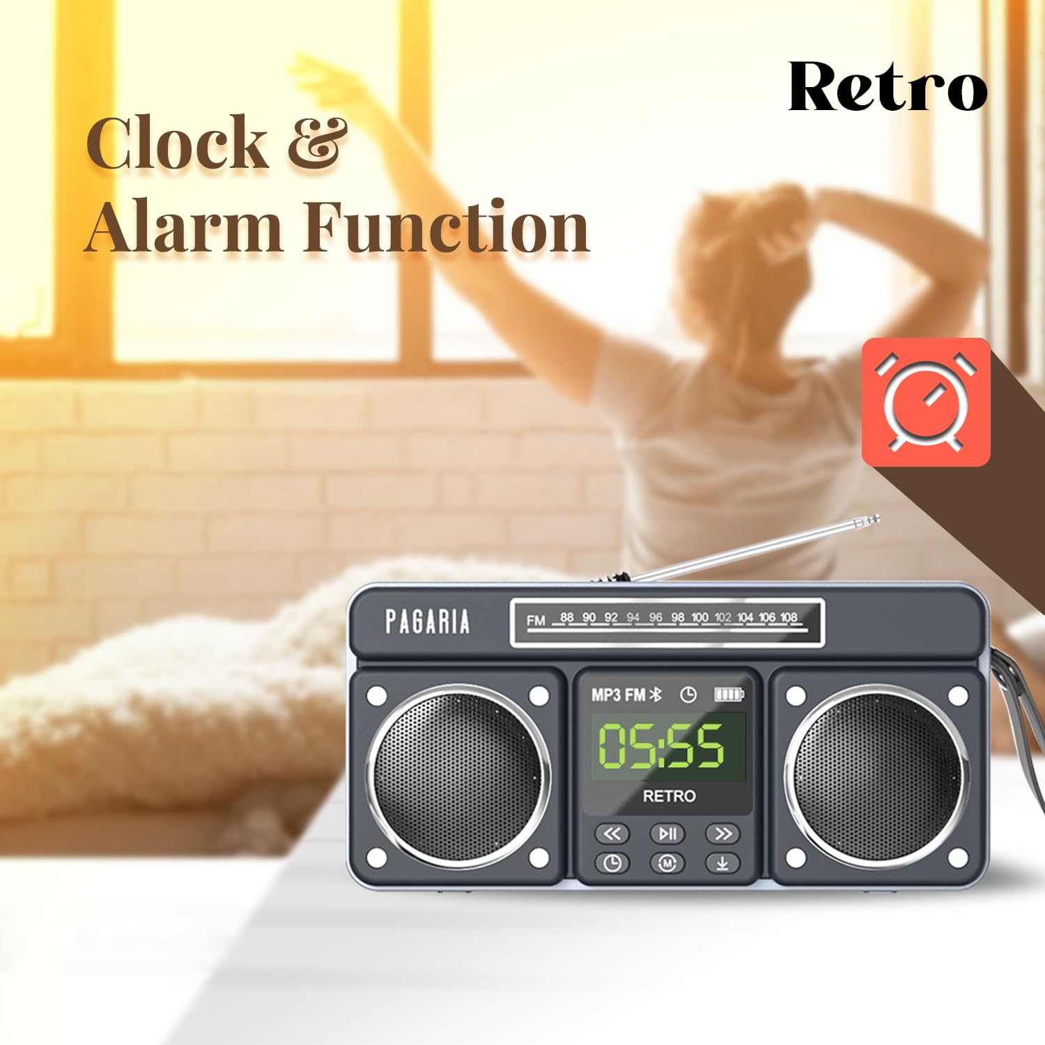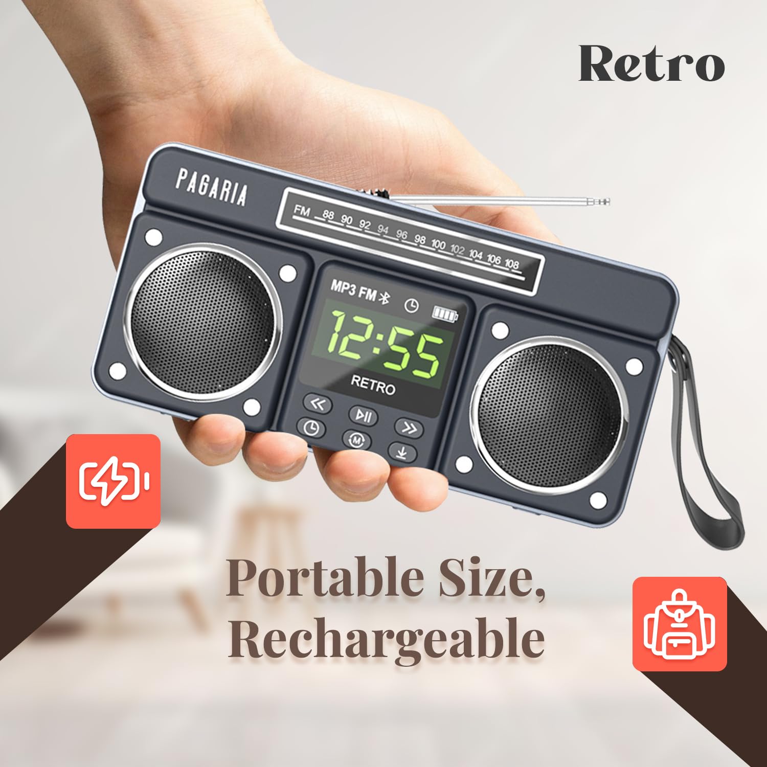 - ✅ RECHARGEABLE WITH TYPE-C CHARGING: Upto 6-8 Hours of Playback on full charge. Comes with Type-C Charging port and can be charged using any 5V Power adapter. If Clock used only for Radio, then battery will work upto 30 hours on full charge.