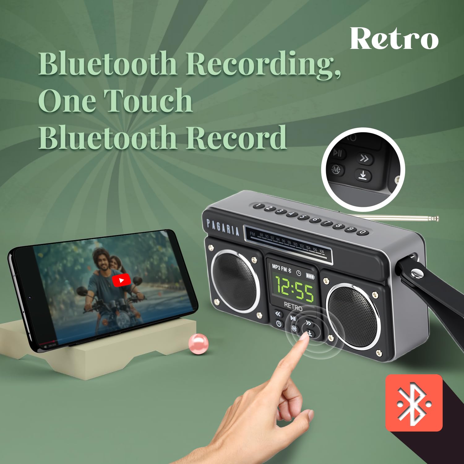 - ✅ BLUETOOTH RECORDING FUNCTION: Simple One Touch Bluetooth Recording function, you can Record your favourite music on TF Card in highest audio quality. The Radio also has Voice Recording function. So now play any song on your phone and record directly on Radio using TF Card.