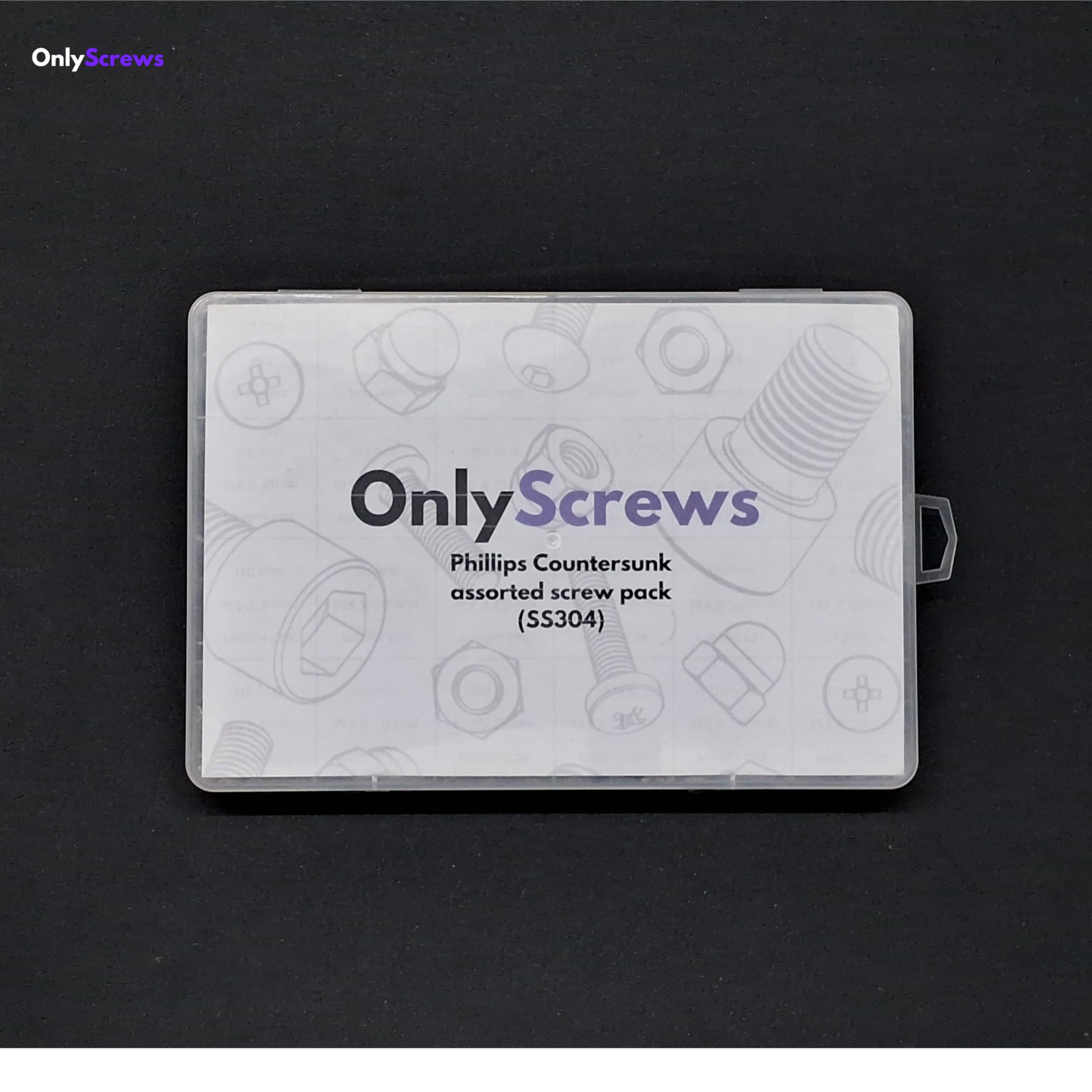 Details: Introducing OnlyScrews’ comprehensive Phillips Countersunk (CSK) Screw Assortment Pack in premium SS304 stainless steel. This meticulously curated set includes a wide range of M3, M4, and M5 screws in various lengths from 8mm to 25mm, perfectly suited for diverse assembly needs. Each size category comes with matching nuts and washers for complete installation flexibility. The SS304 grade ensures excellent corrosion resistance and durability, making these fasteners ideal for both indoor and outdoor applications. The countersunk head design allows for a flush finish, while the Phillips drive enables reliable tool engagement and efficient installation. With 10 pieces of each screw size and 25 pieces each of corresponding nuts and washers, this assortment provides ample quantities for multiple projects. Perfect for DIY enthusiasts, maintenance professionals, and workshop requirements. Phillips CSK Assorted Screw Pack Material: SS304 M3 x 8mm (10pcs) M3 x 10mm (10pcs) M3 x 12mm (10pcs) M3 x 16mm (10pcs) M3 x 20mm (10pcs) M3 x 25mm (10pcs) M3 Nuts (25 pcs) M3 Washers (25 pcs) M4 x 8mm (10pcs) M4 x 10mm (10pcs) M4 x 12mm (10pcs) M4 x 16mm (10pcs) M4 x 20mm (10pcs) M4 x 25mm (10pcs) M4 Nuts (25 pcs) M4 Washers (25 pcs) M5 x 8mm (10pcs) M5 x 10mm (10pcs) M5 x 12mm (10pcs) M5 x 16mm (10pcs) M5 x 20mm (10pcs) M5 x 25mm (10pcs) M5 Nuts (25 pcs) M5 Washers (25 pcs)