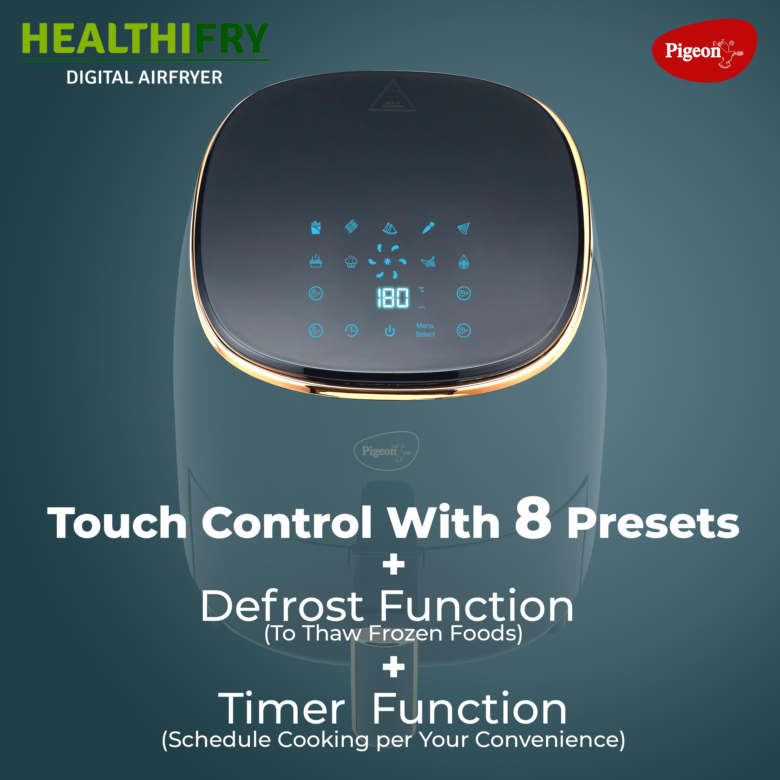 - With innovative features and unbeatable convenience, the Pigeon HealthiFRY Digital Airfryer is the perfect companion for busy home chefs and health-conscious foodies alike.