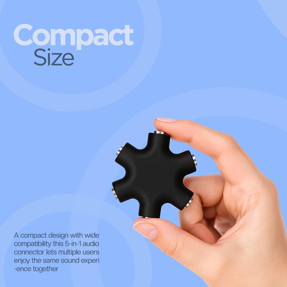 - 【5-WAY HEADPHONE SPLITTER】Features 5 output ports and 1 input port. Made with durable ABS plastic and a flexible PVC cable. Whether you’re jamming with friends or syncing sound across devices, everyone can be part of the audio experience!