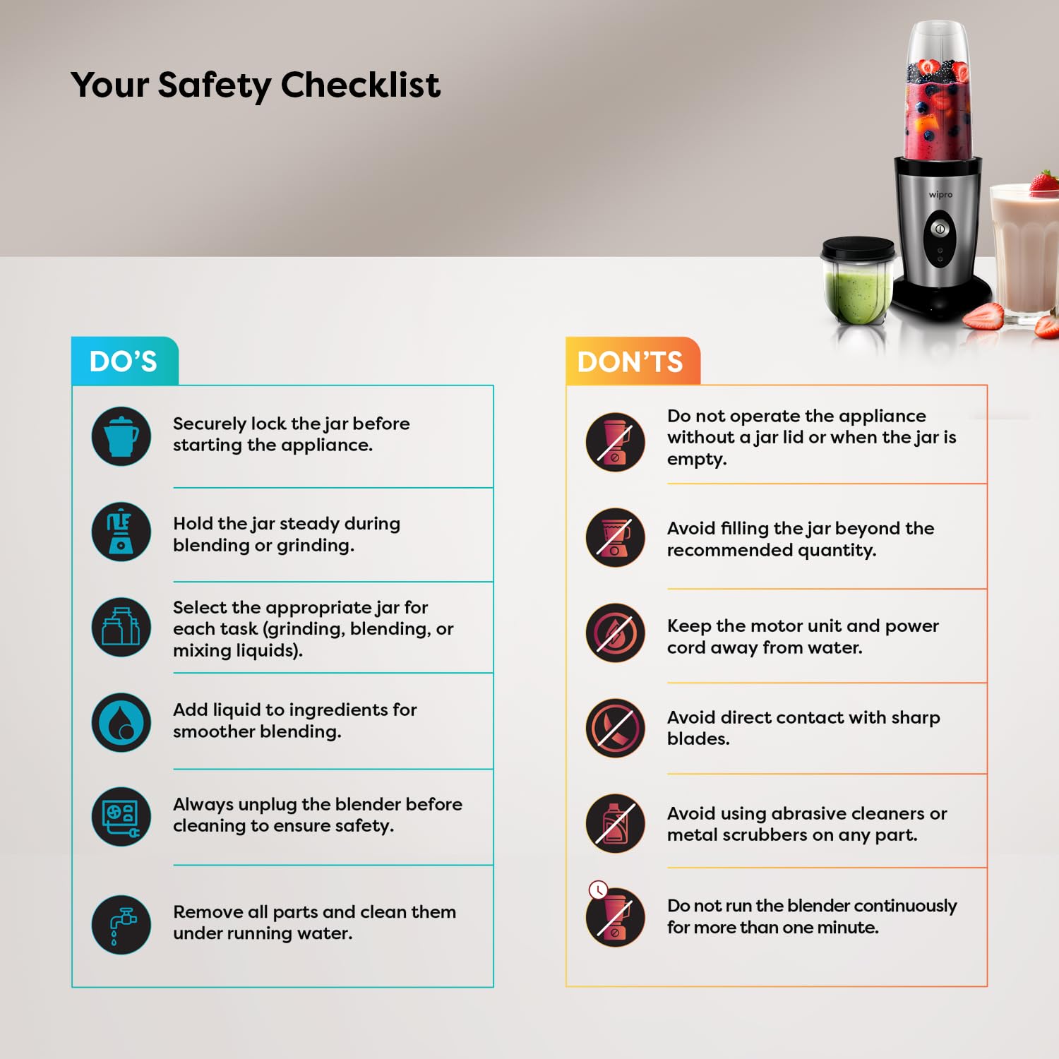 - Intelligent Sensor Technology: Smart blending with auto shut-off for added safety and motor protection.