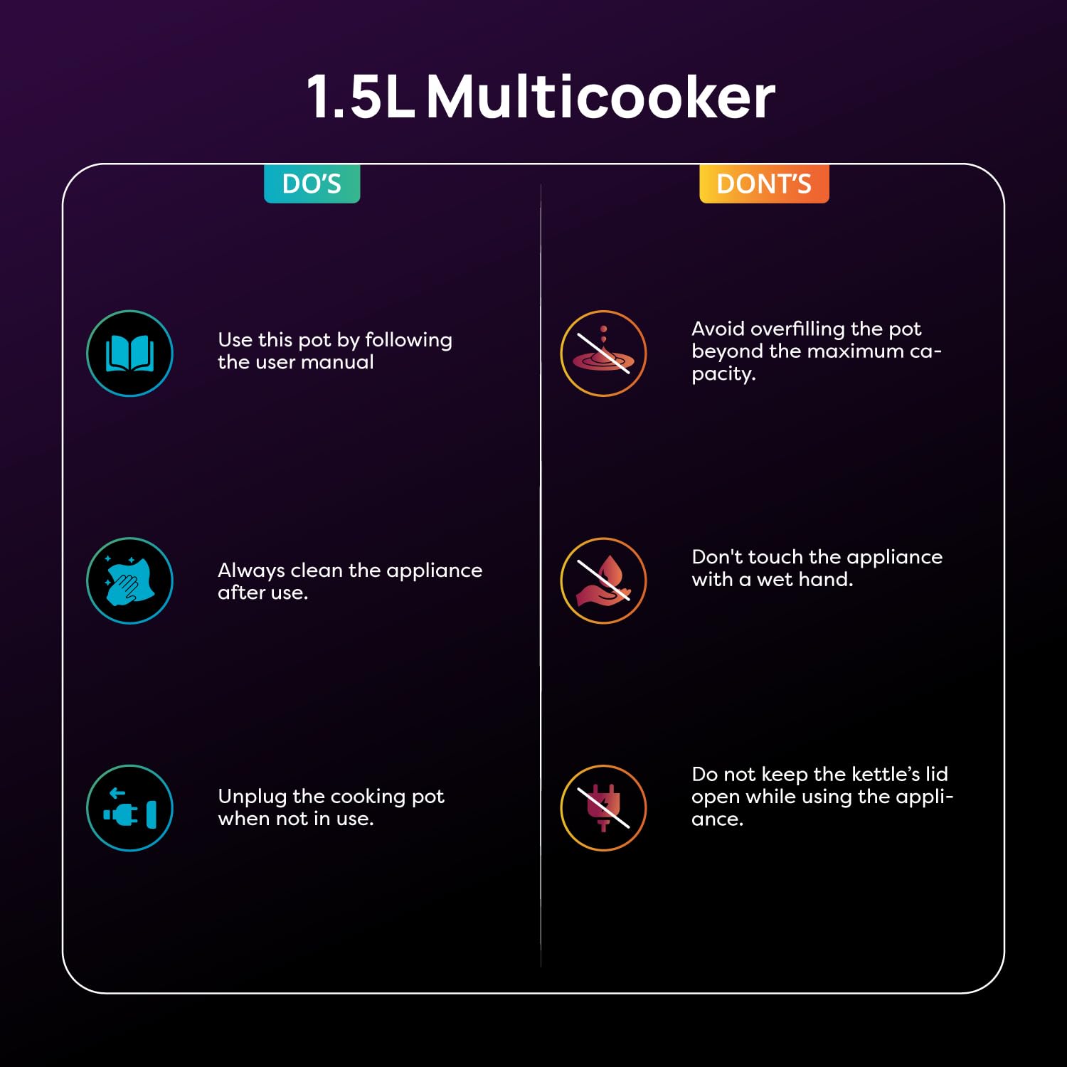 - Generous Capacity: Features a 1.5 L Pot for versatile cooking needs.